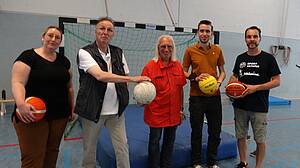 v.l.n.r.: Lydia Brinkmann, StadtSportBund Dortmund e.V., Bernhard Klösel, Uwe Kaminiski und Fabian Erstfeld (alle SPD-Ratsfraktion Dortmund), Christian Podszuk, TV Einigkeit Dortmund-Barop