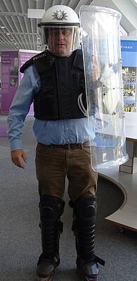In der Ausstellung kommt neben der Darstellung der Polizeibereiche Kriminalität, Verkehr und Gefahrenabwehr auch die Auseinandersetzung mit polizeigeschichtlichen Themen nicht zu kurz.