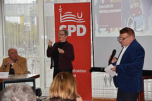 Susanne Meyer, behindertenpolitische Sprecherin der SPD-Ratsfraktion, moderierte die Veranstaltung und zog ein positives Fazit: „Das waren lebhafte Diskussionen mit wichtigen Inhalten für unsere kommunalpolitische Arbeit. Es kann nicht sein, dass in neu gebauten Gebäuden Barrierefreiheit herrscht, aber der Weg dorthin voller Stolperfallen ist. Auch müssen wir kritisch hinterfragen, ob das Urheberrecht eines Architekten höher zu bewerten ist, als ein barrierefreier Zugang für Menschen mit Beeinträchtigungen. Wir jedenfalls sind sensibilisiert, auf die Belange von Menschen mit Beeinträchtigungen bei unseren Veranstaltungen zu achten.“